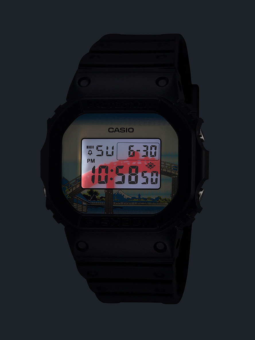 江戸の賑わいを感じさせる橋の曲線を、バックライトと文字板の一体デザインで表現。特別仕様の和風パッケージでお届けします。