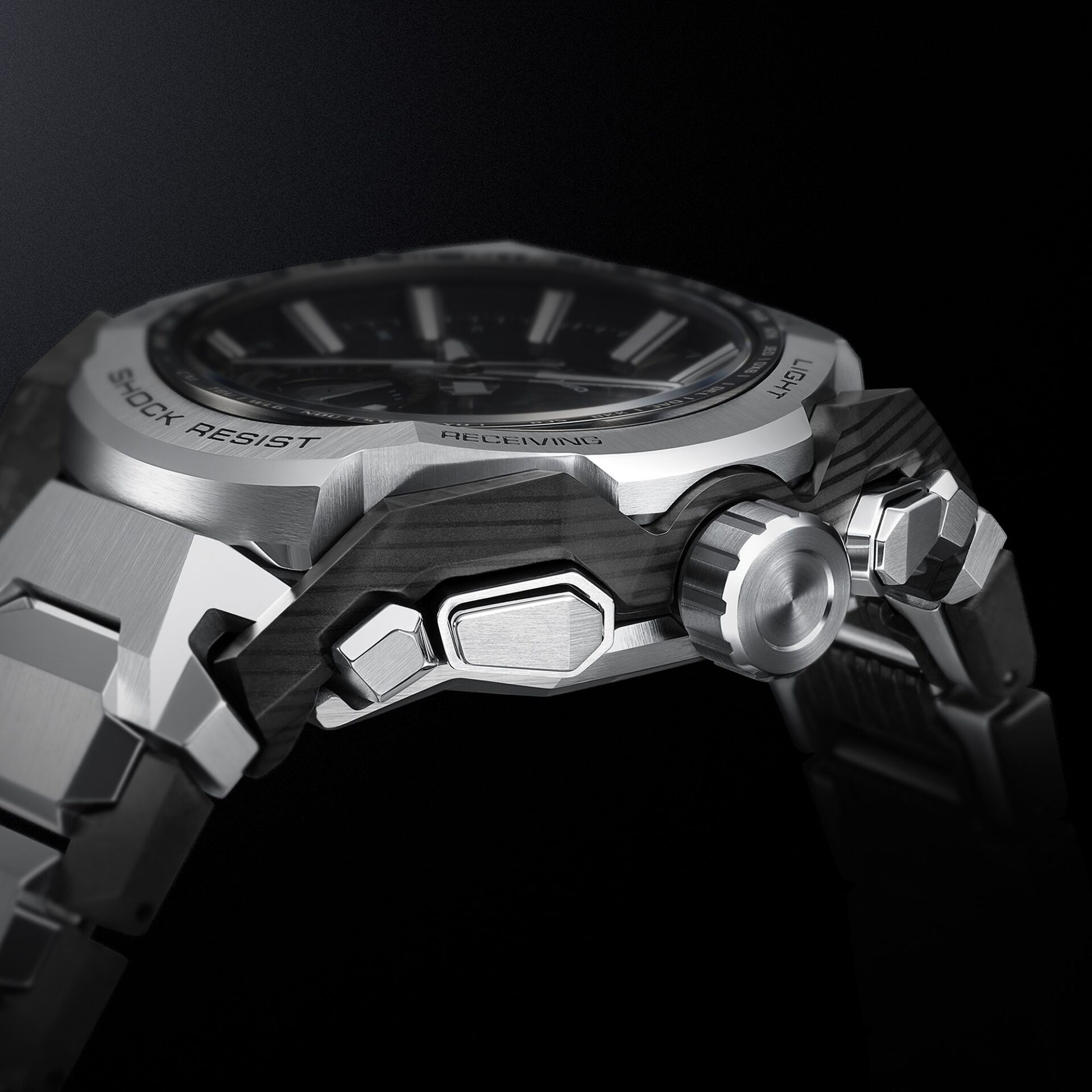 AIが導き出した異素材融合フレームを採用。複雑な造形のカーボン積層フレームと、磨き分けられたステンレスベゼルが、かつてない機能美を演出します。レイヤーコンポジットバンドにより、重厚感と軽やかな装着感を両立しました。
