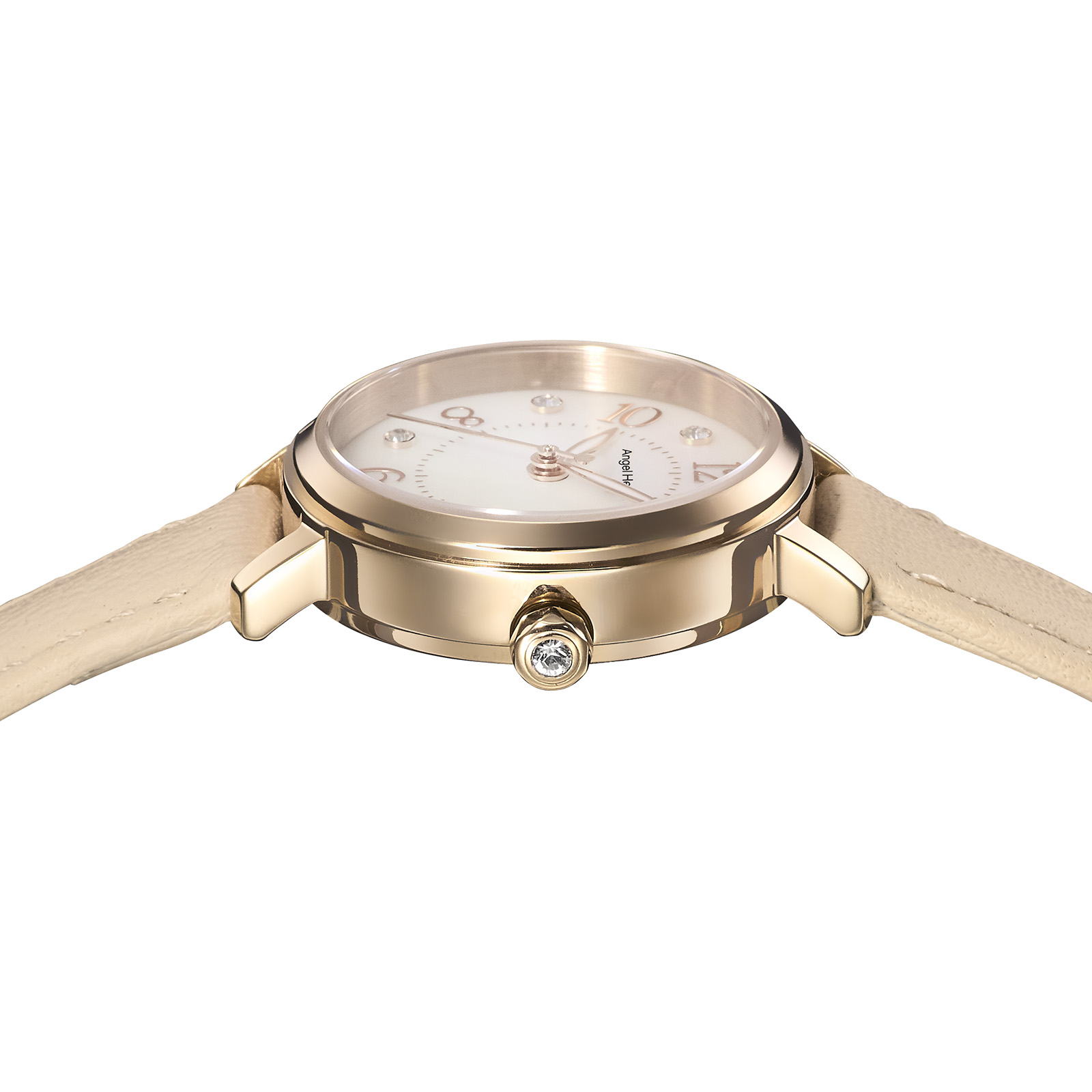 丸みをおびた数字とクリスタルの組み合わせが、優しい輝きで女性らしさを引き立てます。