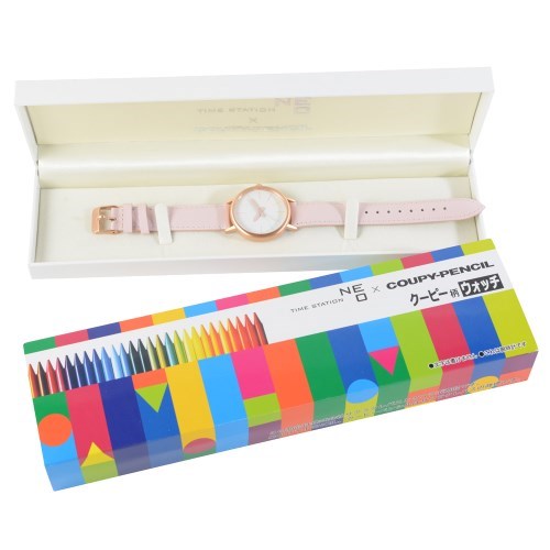 サクラクレパスとタイムステーションNEOのコラボ腕時計【クーピー柄ウォッチ】NCW-02-LP こうばいいろ。
