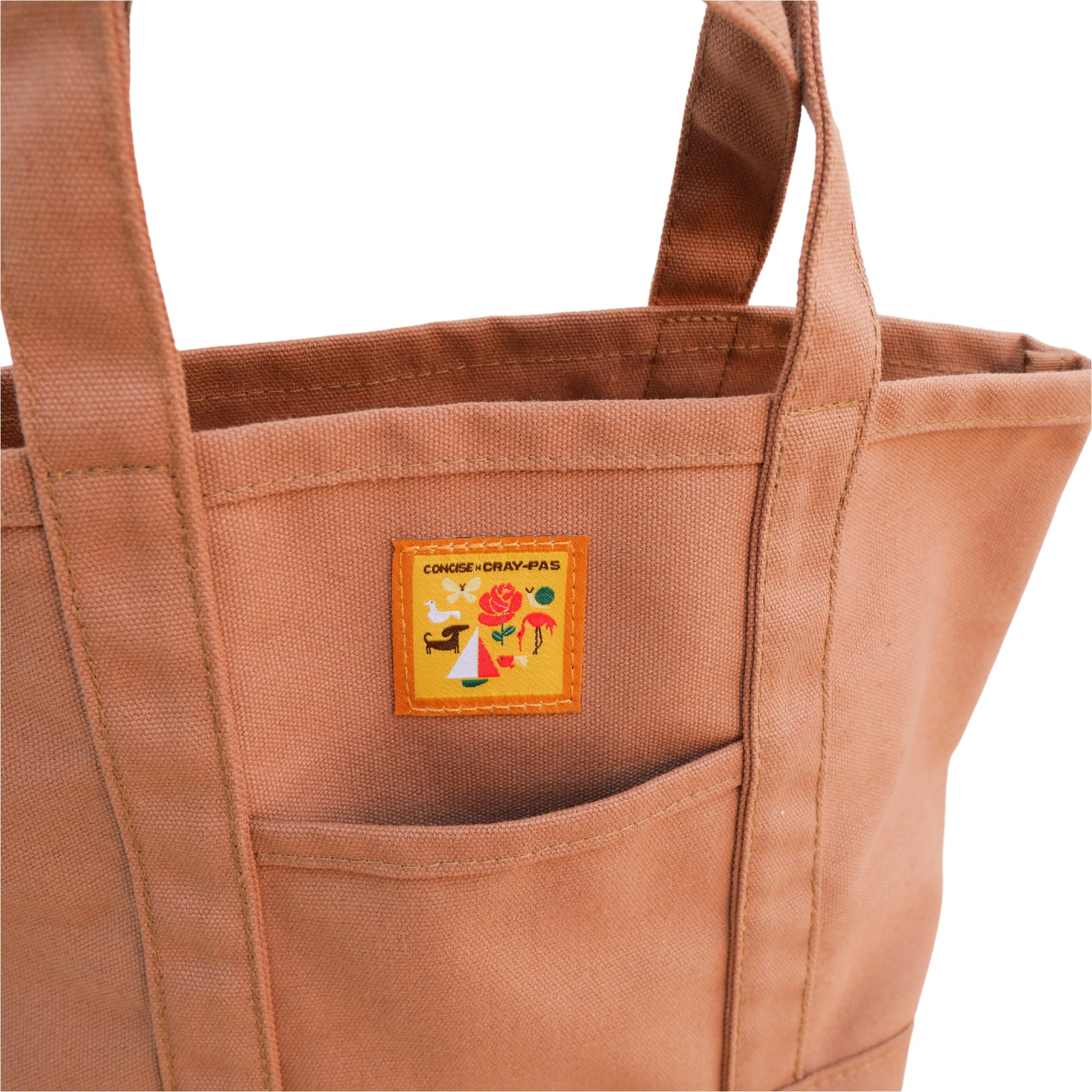 パッケージ柄の織ネームが可愛い、コンパクトながらもマチが広めで容量たっぷりのトートバッグ。ちょっとそこまでのお出掛けにもぴったり。